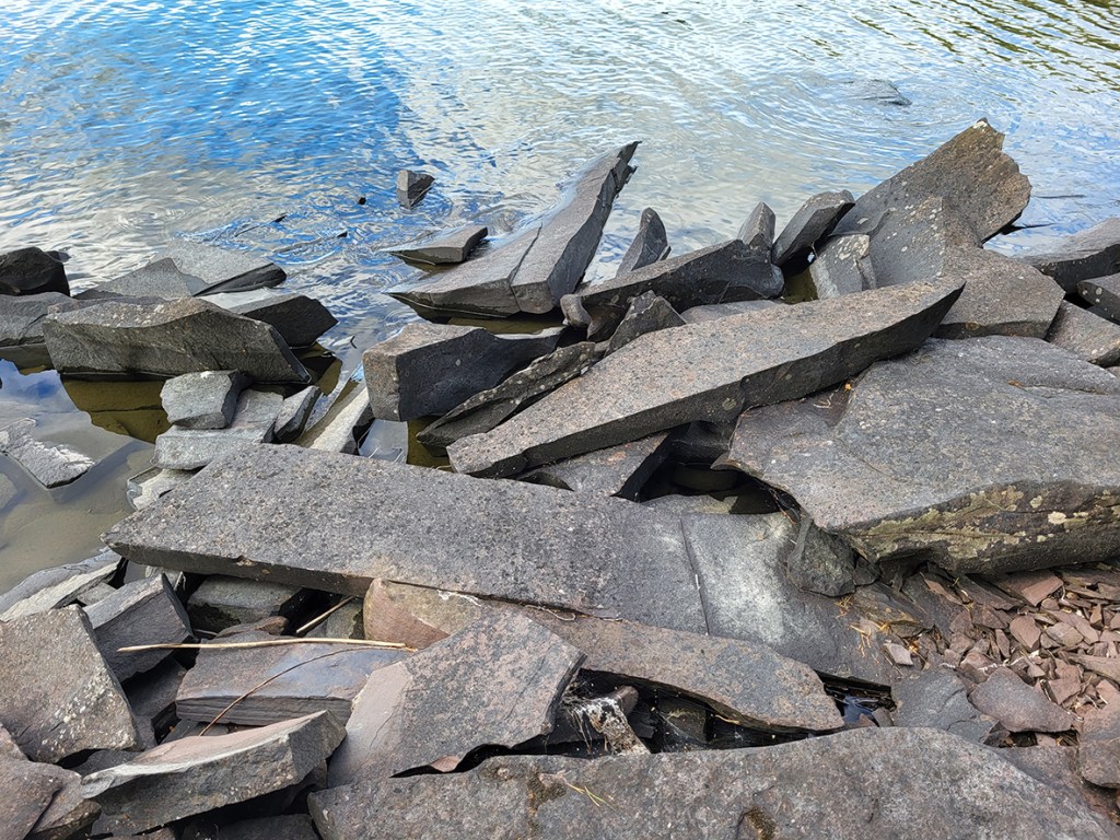 The men move across the snow-covered ice, one of them leading the two large horses pulling the sled. They land on the north side of Ulvøya, where the quarry is located. The men are dressed in warm clothes, but the winter cold makes them work quickly all the same. One of them brushes away the snow, revealing a reddish stone slab. He continues, and soon the entire stone is free of snow. Its length is almost twice the height of a man. One end is wider than even the largest among the men. Towards the other end the stone narrows. There, the width is no greater than a man’s head. The thickness, however, is quite uniform, about two handbreadths, but the stone is not completely flat. At the narrow end, which will form the top and front when it is erected, the stone bends up from the snow. It is almost like an animal’s head, slightly tilted forward. The experienced stonemasons know that this is a natural shape here on the island. Now the landscape is covered in snow, but in summer it is easy to see that the rock here on the island splits into long, flat slabs, often with such a curved shape at one end. The stonemasons also know that there is something mysterious about the rock here; it cannot be a coincidence that the splitting has such shapes. This type of stone is found elsewhere along Steinsfjorden, but there it usually splits into smaller pieces. In the quarry here on Ulvøya, however, the rock divides into long, flat slabs. In addition to the shape, the stones have a surface in which it is easy to carve magical runes and images. That is why people come here to fetch stones for commemorating the dead.